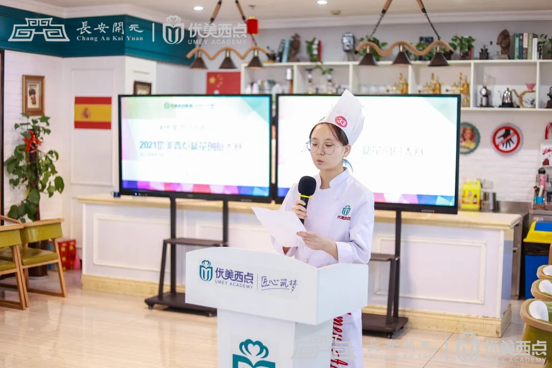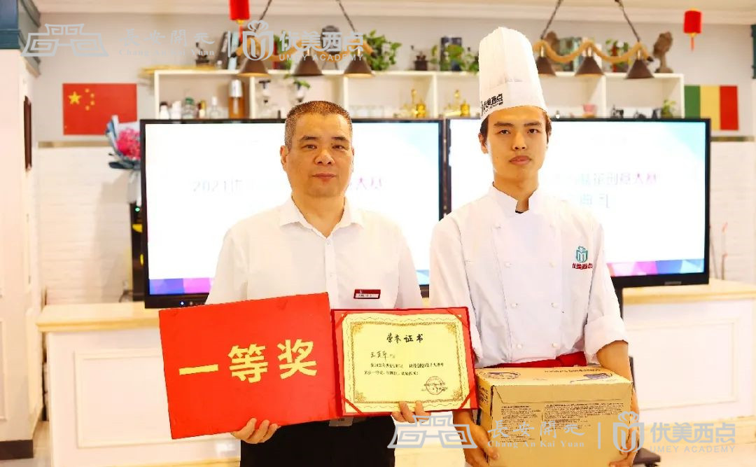 西安优美西点万校长为一等奖获奖选手颁发奖品