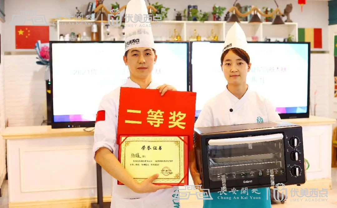 西安优美西点臧老师、李老师为三等奖获奖选手颁发奖品: