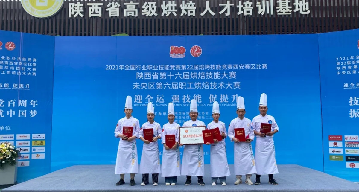 2021年6月26日,由陕西省烘焙行业协会、陕西财贸金融轻工工会以及各方联合承办的、以“迎全运、强技能、促提升”为主题的“2021全国行业职业技能竞赛第22届烘焙技能竞赛西安赛区比赛暨陕西省第十六届烘焙技术大赛在西安隆重举办。我校韩学森老师、高国富老师、葛典普老师、臧荣鑫老师、孙盼春老师、赵晓利老师、刘香娟老师等到场参加。
