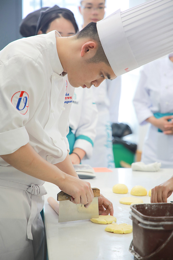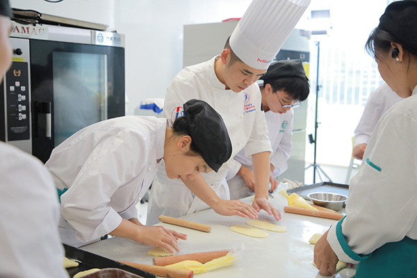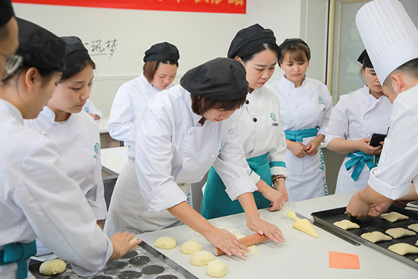 从制作馅料、面团的整形和发酵,制作中的每一个环节都一一地向学员们演示。