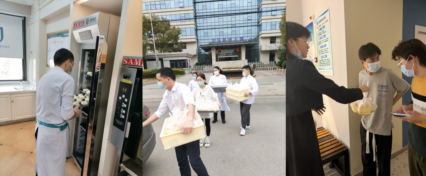 企业有温度,社会才有希望。优美西点不忘企业的责任感,牢记烘焙人的职责,发起助力疫情防控行动。抗疫之战打响的第一时间,部分老师坚守校区,为疫情防控一线的医护人员和社区志愿者们匠心手作数百份面包点心,送去初春的一丝暖意。助力一线工作人员以饱满的精神装状态,更好地投入到防疫工作,打赢这场疫情攻坚战!