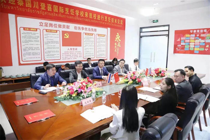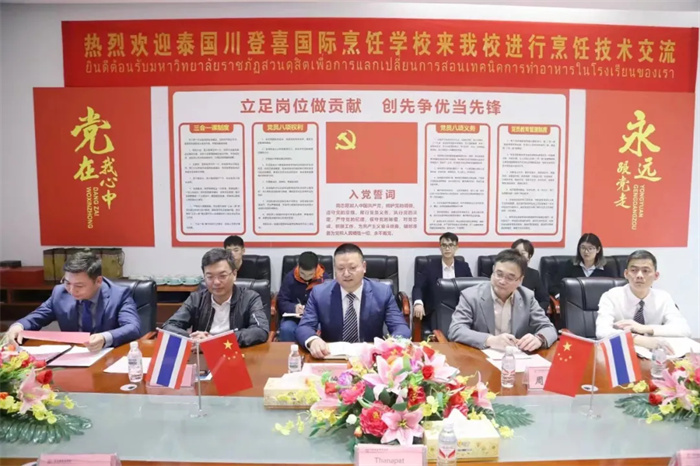 会议伊始,翟维铁先生对泰国川登喜国际烹饪学校塔南帕先生一行人的远道而来表示热烈的欢迎。时隔三年能再次达成深入合作,此次合作开拓了就学渠道,让我校能向一流教学奋进。泰国川登喜国际烹饪学校致力于研发新产品、新口味而成立了独立的制造工厂,其刻苦钻研精神值得我校学习,更是我们广西华南学子的学习榜样。