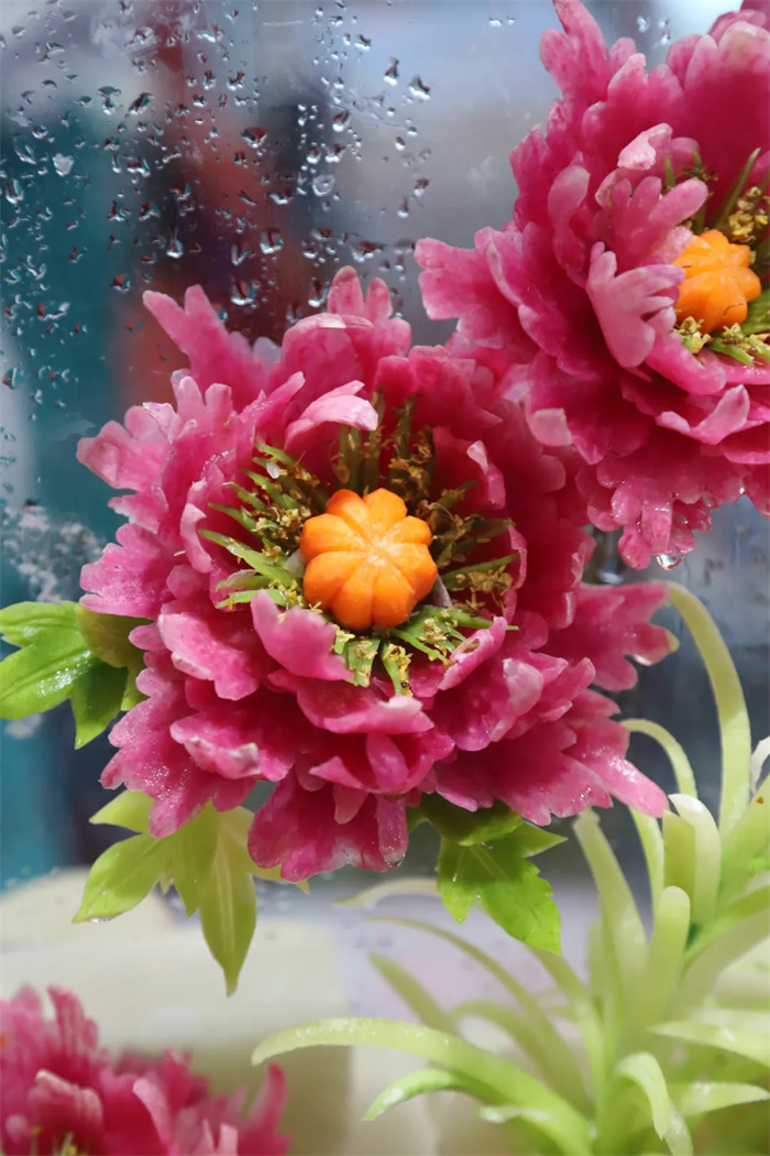 在嘉宾们感受技能盛宴的同时,我们还为展台前的嘉宾们送上了同学们雕刻的“心里美”鲜花,栩栩如生的花朵甚是惹人喜爱,瞬间一扫而空。