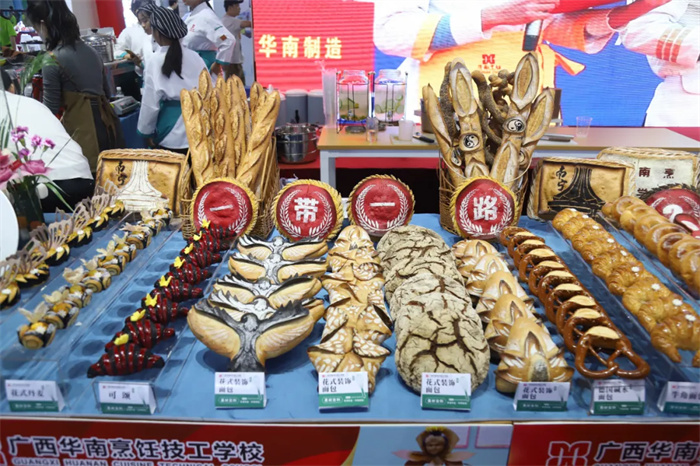 现场的美食品鉴也是一大重头戏,广西华南烹饪为参展的嘉宾带来了诸多特色美食,色香味俱全的中餐小吃、精致的西点,还有咖啡饮品,现场香味四溢,试吃者络绎不绝,将广西华南烹饪的展台围得水泄不通。