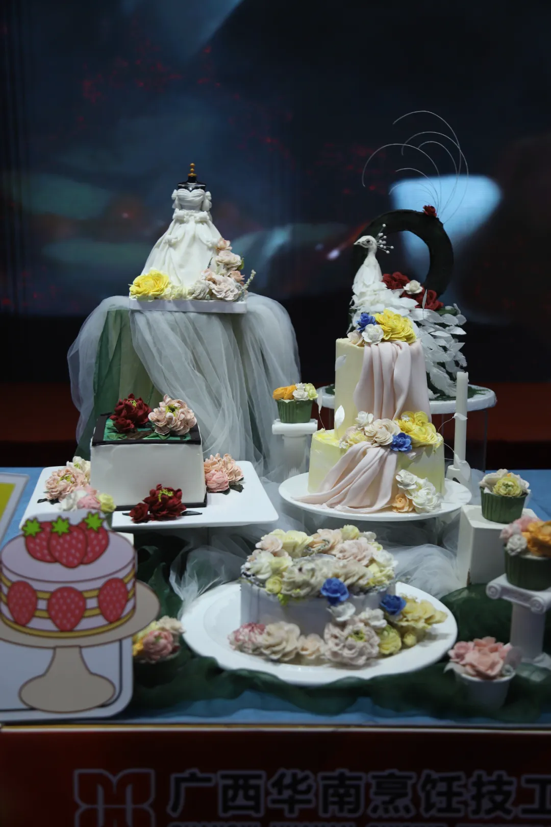 艺术面包作为面包界的天花板也是备受瞩目,现场,我校展示了带有人博会主题以及壮族元素、南宁本土元素的艺术面包,每一款造型都匠心独具。还有精致的蛋糕展台,美轮美奂的蛋糕很难不让人心动。
