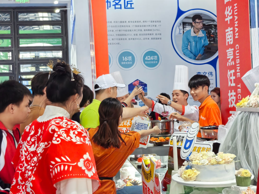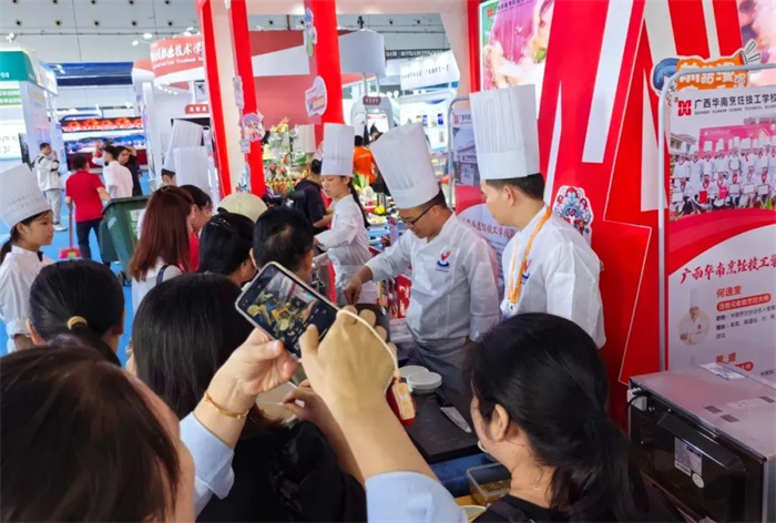 广西华南烹饪技工学校作为广西知名职教品牌,此次参展,学校坚持以职业教育为根基,以服务社会为抓手,惊艳亮相人博会—高技能人才成果展,展示我校在技能人才培养以及产教融合方面的举措和显著成效,并为现场的参展嘉宾们带来了美食和技能展示的多重盛宴,通过深入学习交流,促进创新合作。
