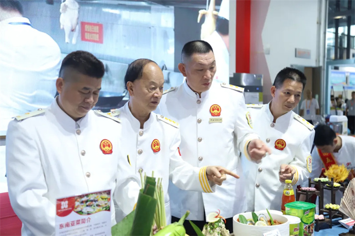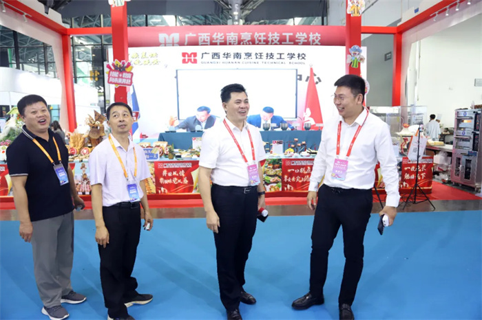 广西华南烹饪致力于打造优秀教师队伍,护航学子高质发展。现场,广西华南烹饪展台前名师荟萃,他们都是领域内和赛场中的佼佼者,也是我校的终身客座教授及专业教师,他们授课经验丰富、专业技能扎实,为我校培养了众多出色学子。现场,他们身着大师服,与现场参观的嘉宾们进行互动,亲和力十足,也给嘉宾们留下了深刻的印象。