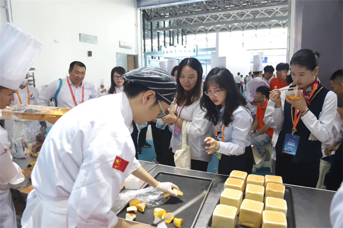 中午小憩之时,我校师生在闫冠英校长的带领下,为周边展位的参展人员贴心送上我校的西点和小吃,大家收到来自广西华南烹饪的美食也是十分惊喜和感动,并予以回礼,现场其乐融融。