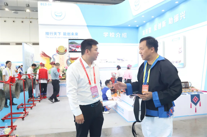 图为自治区人社厅职业鉴定中心主任卢有连参观我校展台