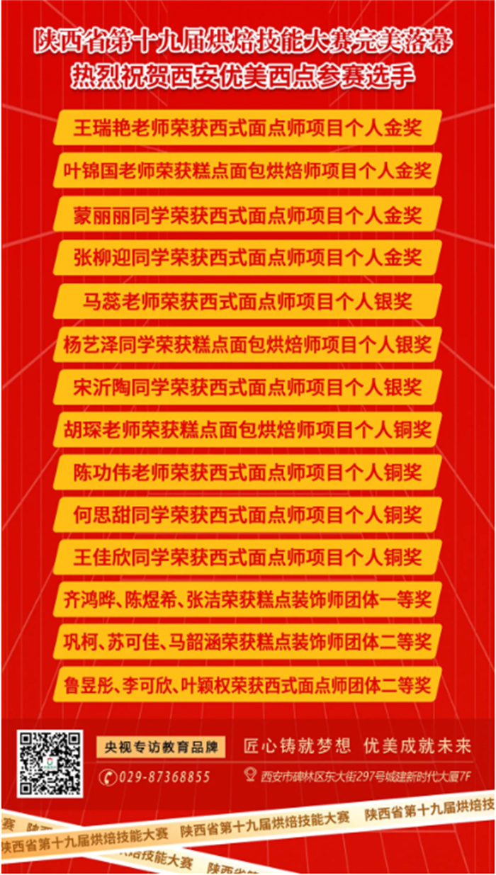 通过参加这次比赛,西安优美西点学子不仅展示了自己的技能,也为学校树立了良好的形象,彰显了学校的专业实力。优美西点始终秉承“匠心筑梦”的教育理念,未来将继续致力于培养更多优秀的西点技术人才,为社会提供更优质的西点产品和服务,为国家的发展贡献自己的力量。