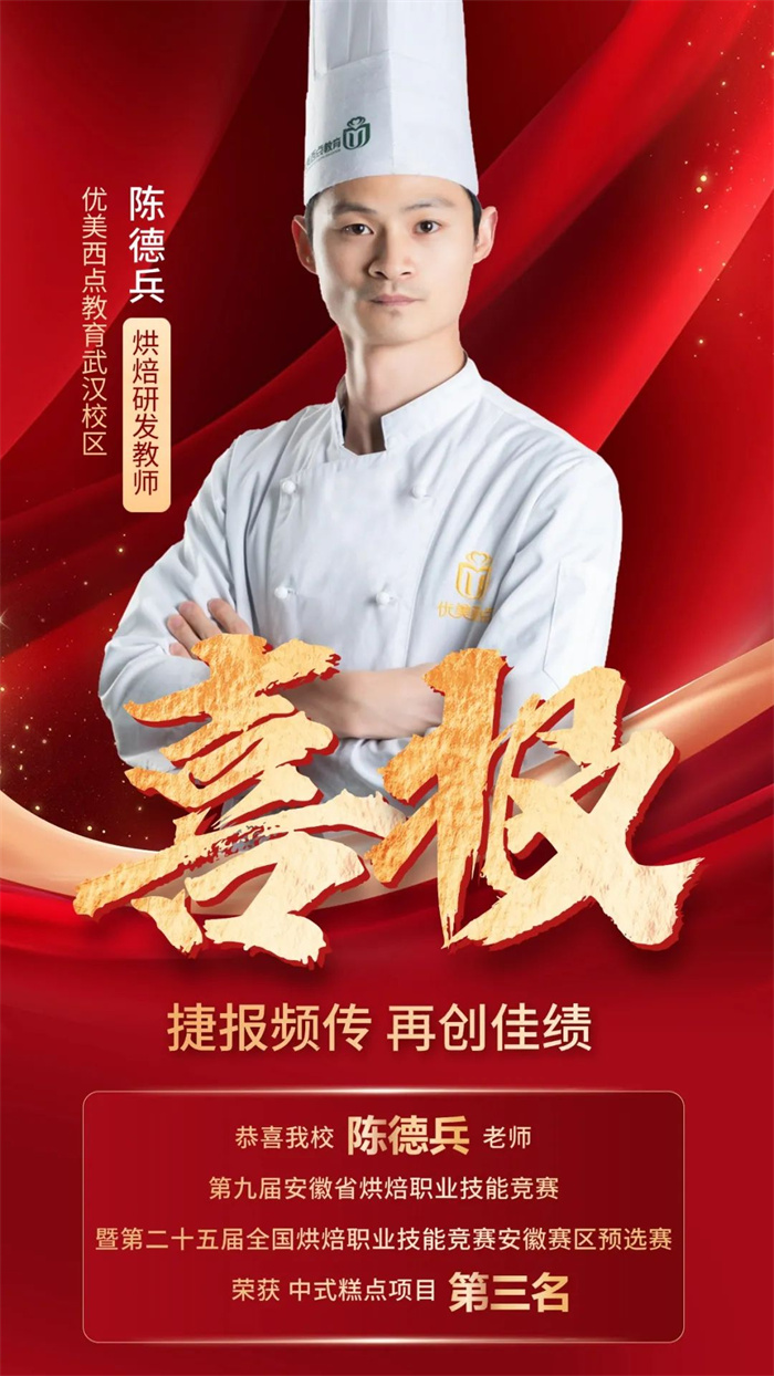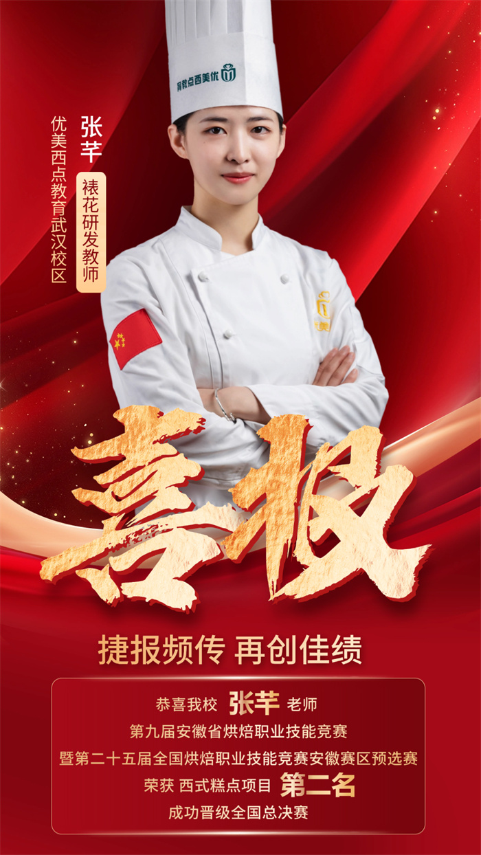 8月9日至11日,比赛在省会合肥隆重开赛。经过激烈的角逐,我校裱花研发教师张芊老师凭借过硬的专业技术和极富创意的作品,斩获西式糕点项目第二名!成功挺进全国总决赛!我校烘焙研发教师陈德兵老师凭借高超的烘焙技艺斩获中式糕点项目第三名!