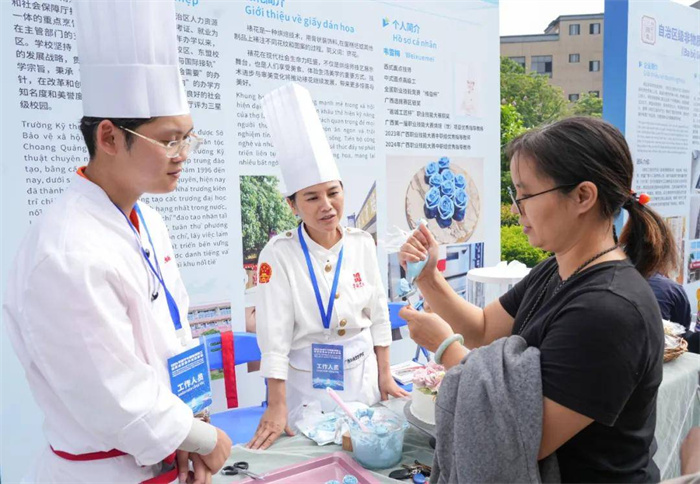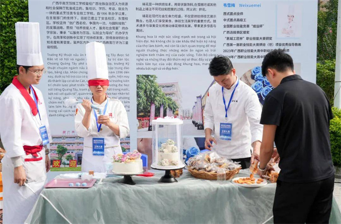 为深化与越南各领域友好交流与务实合作,激发职工技术创新热情和创造活力,推动构建具有战略意义的中越命运共同体,10月30日,2024年南宁中越友城职工创新成果展示交流活动在南宁市总工会文化综合楼4楼和工人文化宫职工广场举办。广西华南烹饪技工学校作为知名综合性烹饪人才培养的摇篮,强势出击,致力于在资源共享时代下,深入学习交流,促进合作创新。