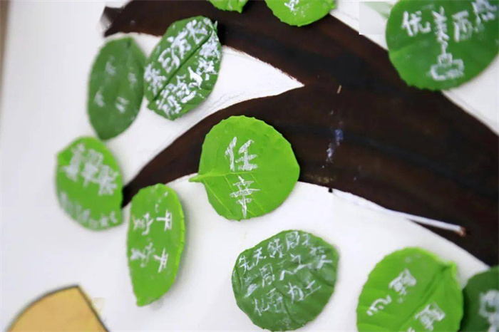 班级就像一棵大树,而每一位莘莘学子就是树上的叶子,开班典礼上,同学们纷纷用颜料将名字写在用翻糖制成的叶子上,并沿着枝干粘贴,不一会儿,一棵翠绿的树就凝聚了师生们的名字,同时也寓意着新班级未来一定会枝繁叶茂,硕果累累。