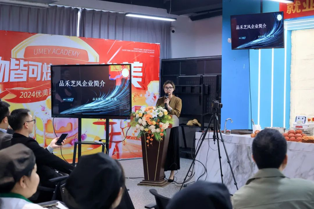 作为活动核心环节,品禾芝风企划经理赵可欣女士全面展示了企业的品牌实力、岗位需求与职业晋升体系。她提到,品禾芝风作为烘焙行业领军品牌,需兼具专业技能与创新思维的年轻人才加入。