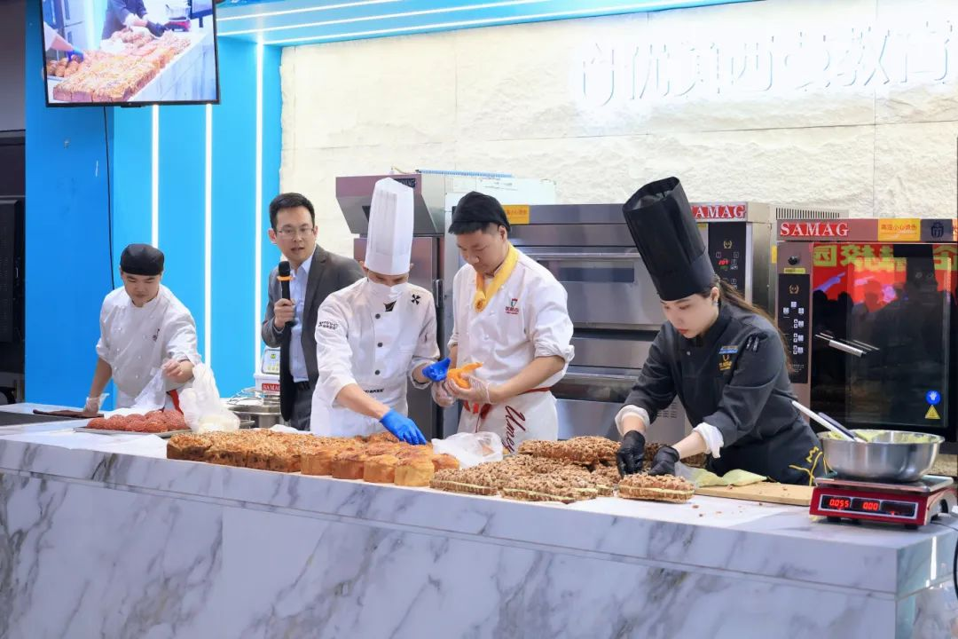 活动伊始,长安开元教育集团广州院校校长助理潘思庭先生发表致辞。他强调,优美西点始终秉持“技能立业,匠心筑梦”的办学使命,致力于培养具有专业素养与创新能力的烘焙人才,并期待通过校企合作进一步拓宽学生职业发展通道。
