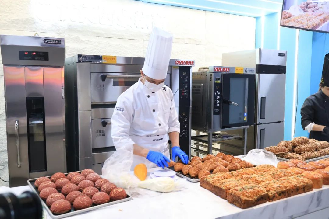 活动现场的高潮来自品禾芝风技术督导王文壮老师的烘焙技艺展示。他现场演绎了门店六大畅销单品——核桃马里奥、丹麦可颂、冰淇淋泡芙、手撕包、可颂挞及红豆肉松吐司的制作过程,从原料配比到工艺细节倾囊相授。