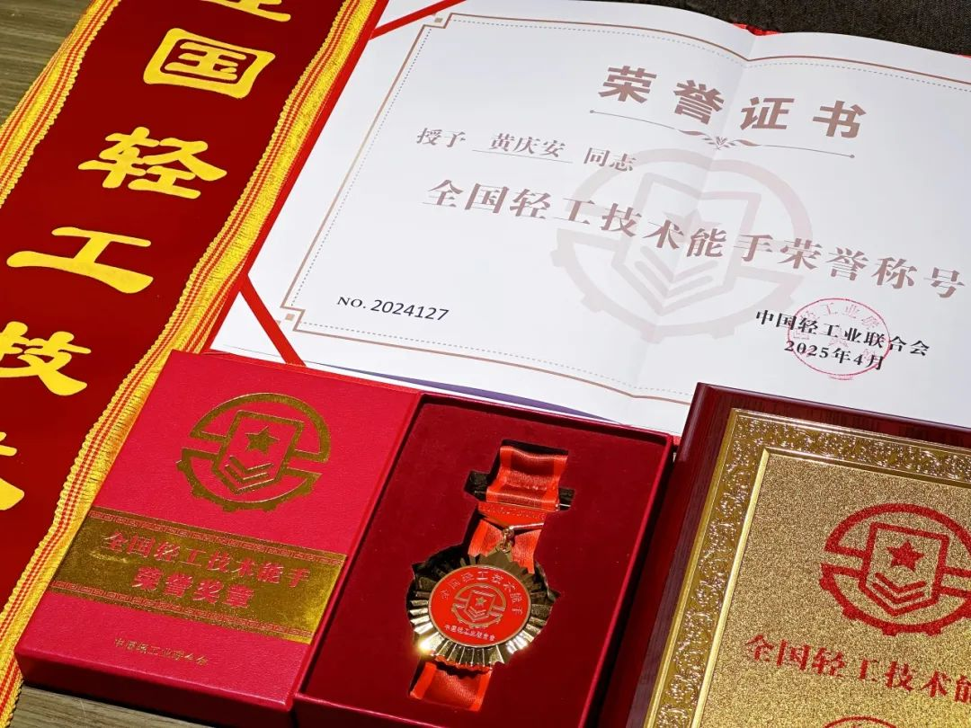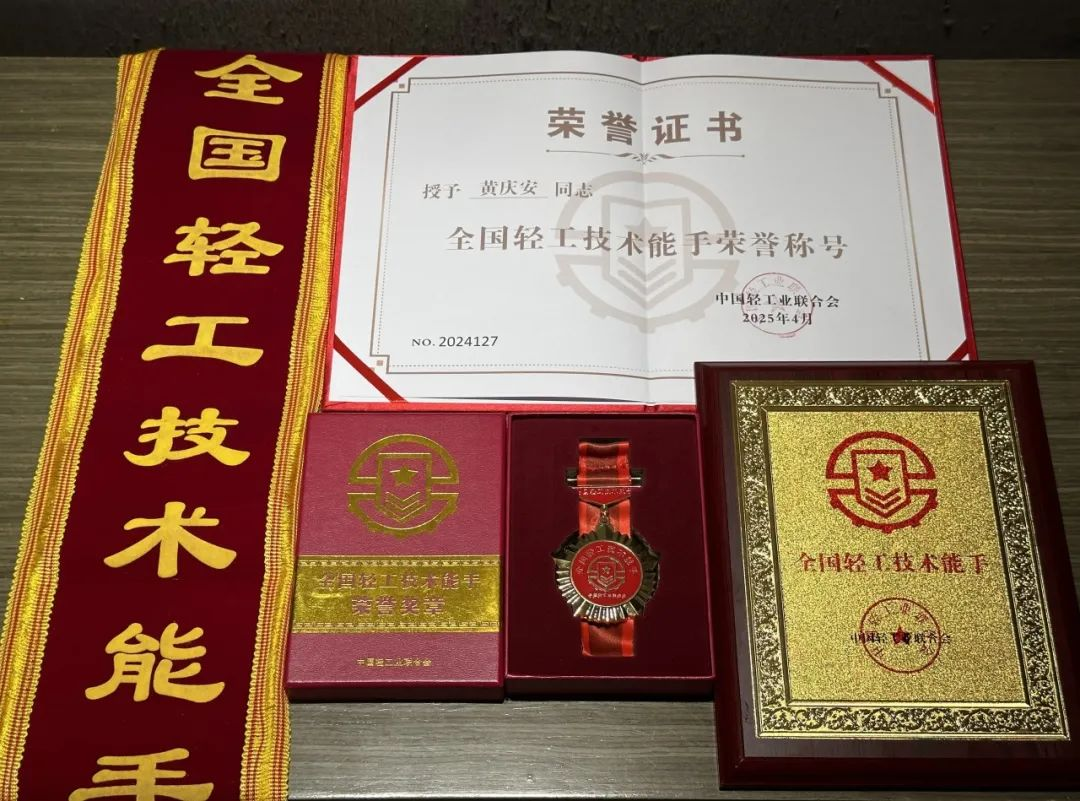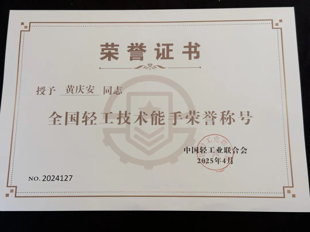 "当得知荣获'全国轻工技术能手'称号时,我内心充满惊喜与感动。这份荣誉不仅是对我多年钻研面包烘焙技艺的认可,更是对我坚持教学初心的鼓励。"黄庆安老师手持荣誉证书喜悦的说道。
