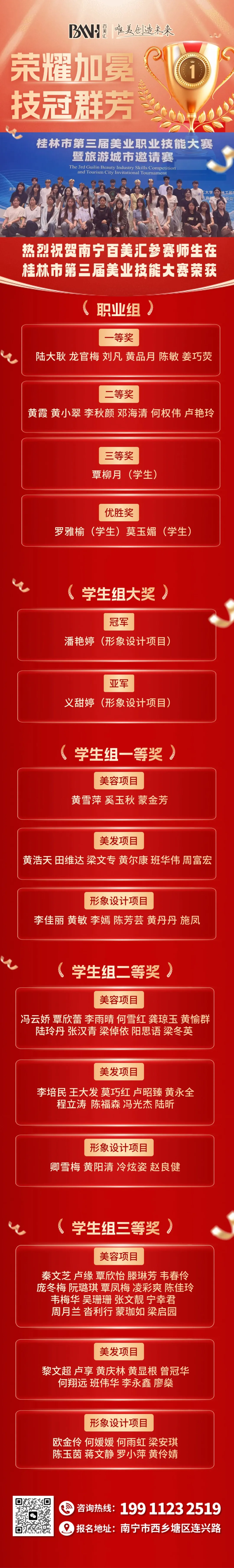 此次在桂林市第三届美业技能大赛中取得的优异成绩,是百美汇学子们用汗水和努力浇灌出的硕果,也是学校教学实力的有力彰显。