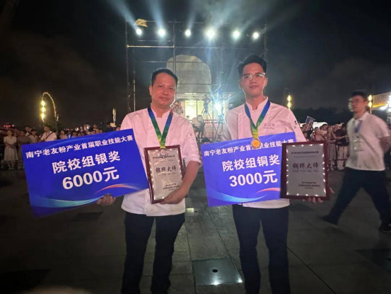 决赛现场,我校中式烹调专业谢朝良、苏筵锋、邓辉成、黄龙海、陆达贵等多位老师与同样在预赛中脱颖而出的三十多名老友粉烹饪高手同台竞技,并凭借卓越的烹饪技艺以及活动组委会专家的专业评审,最终分别斩获1银牌、1铜牌、3优胜奖的佳绩!