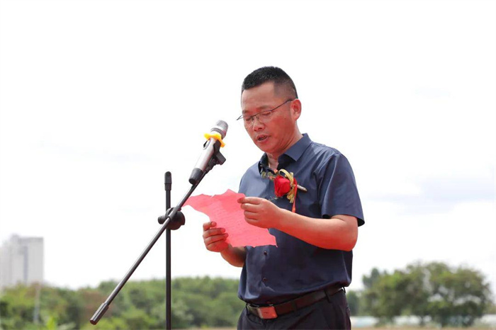 随后,安徽金鹏建设集团股份有限公司广西分公司总经理余翔先生作为建设单位代表发言,他表示,在接下来的项目建设过程中,定会与学校通力合作、密切配合,全力以赴、攻坚克难,严把材料质量关、严把施工安全关,确保项目如期全面建成并投入使用。
