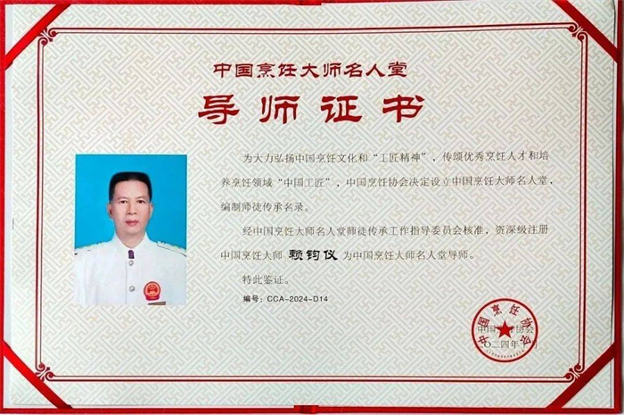 10月26日,2024中国烹饪大师名人堂师徒传承鉴证盛典现场,赖钧仪大师凭借多年来在烹饪界的造诣,荣获“2024年中国烹饪大师名人堂导师”称号!充分体现了烹饪行业对赖钧仪大师厨艺和贡献的高度认可。