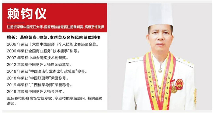 教学上,他尽职尽责、桃李满园。他将自己的精湛厨艺和对美食文化的深刻理解倾囊传授,带领华南学子们探索烹饪文化的奥秘。相信在赖钧仪大师的引领下,同学们定能传承匠心,凭借扎实的专业技能,在烹饪领域谱写绚丽篇章,为美食文化的传承与发展贡献力量。