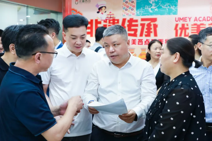 5月23日,长沙市政协主席陈刚率专项调研组莅临优美西点烘焙教育长沙院校,实地考察职业教育产教融合工作。调研组一行深入教学实训基地,详细了解优美西点在技能人才培养、校企合作模式创新等方面的实践成果,对优美西点教育品牌构建"培训-认证-就业"闭环体系给予高度评价。