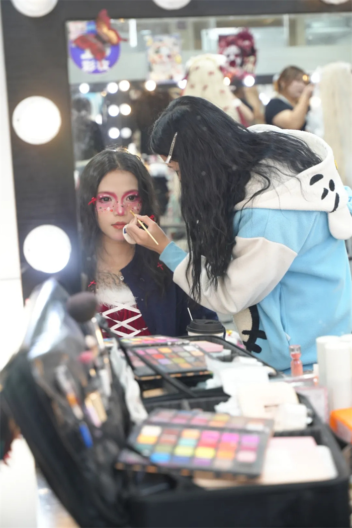 随着比赛正式开始,化妆教室的空气中弥漫着紧张而兴奋的气息。同学们熟练地运用各种彩妆工具,细致入微地进行面部轮廓的勾勒、眼影的晕染以及唇色的搭配。每一步操作都展现了她们的专业功底,同时也透露出无限的创意灵感。