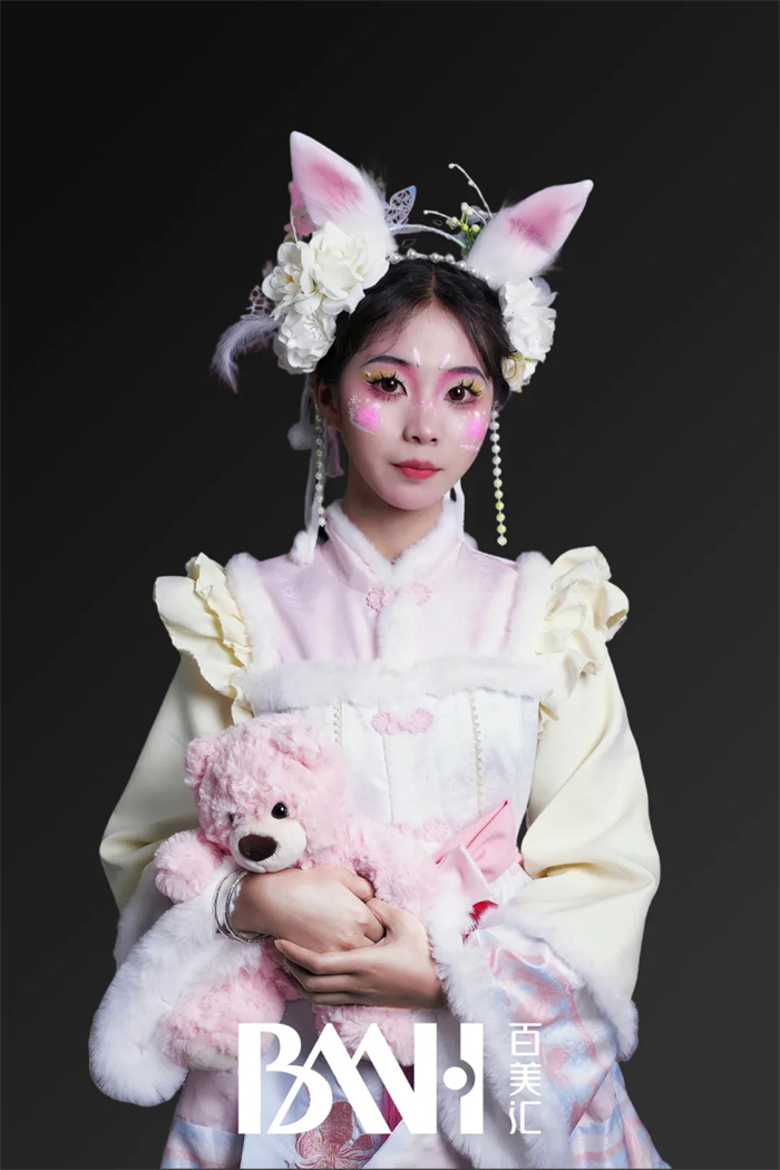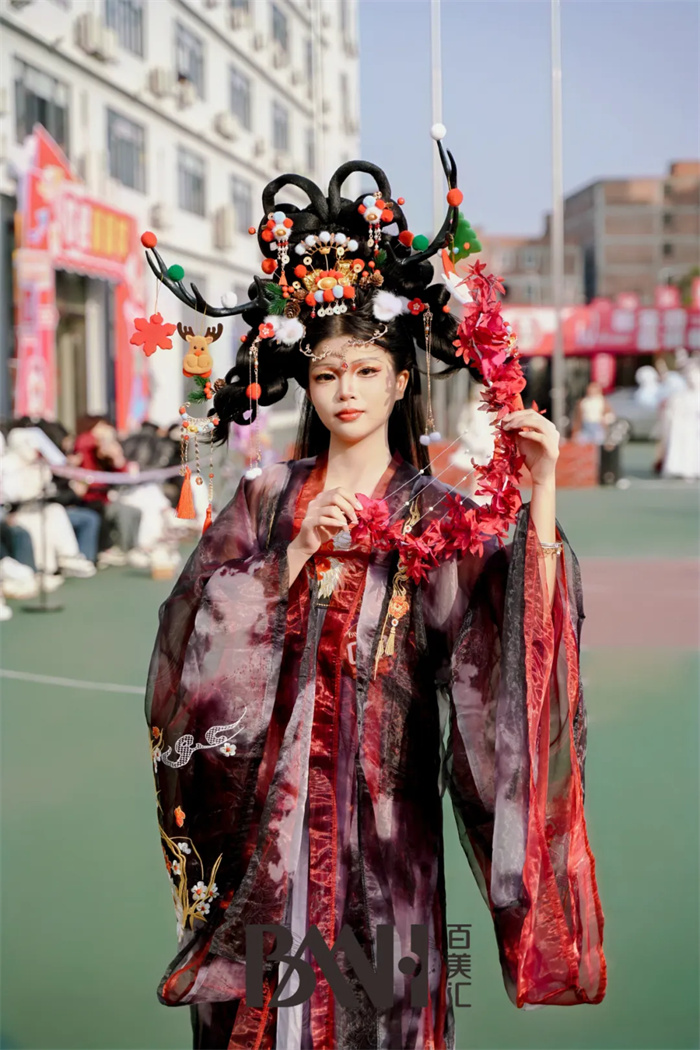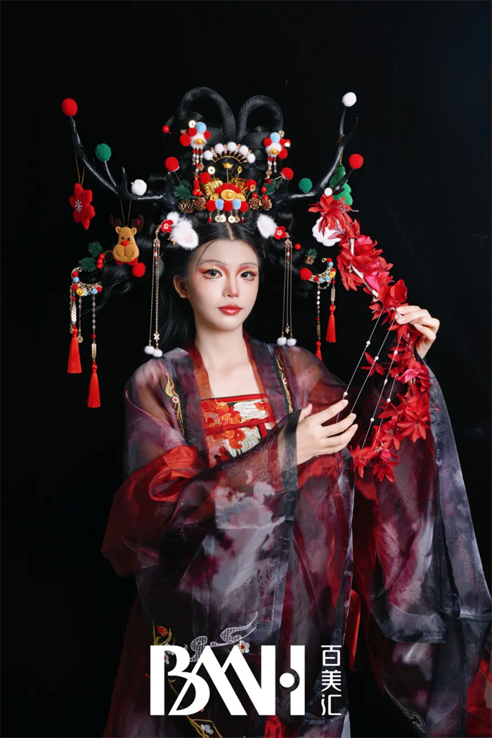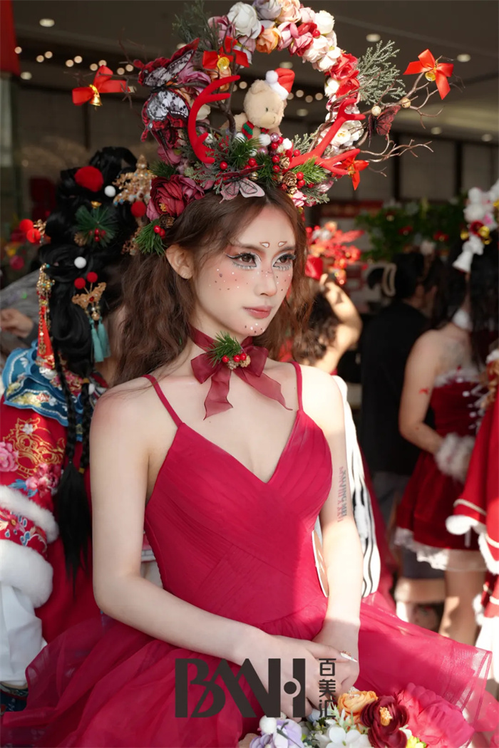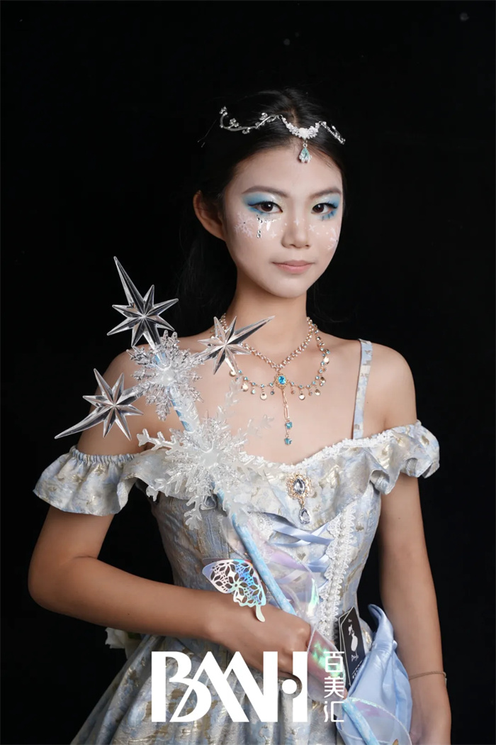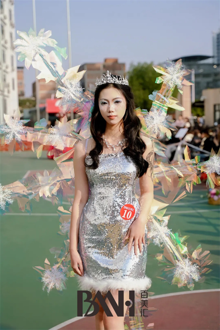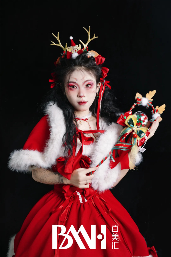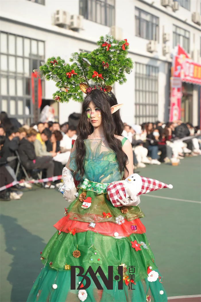 在比赛开始前,选手们早早来到现场进行准备工作。他们精心选择了各自心仪的圣诞主题,从设计草图到挑选材料,每一个细节都反复斟酌。本次比赛分为了圣诞麋鹿、冰雪女王、古风少女三个妆造主题,同学们可自行选择任一主题比赛。