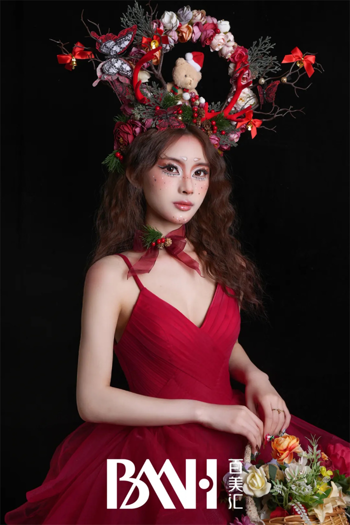 近日,我校彩妆专业举办了一年一度的圣诞创意妆容大赛。这次比赛旨在提高百美汇学员的审美素养和实际操作能力的同时丰富校园文化生活。参赛选手们在比赛中展示了精湛的化妆技巧,通过各种创意构思,把圣诞节的氛围表现得淋漓尽致。