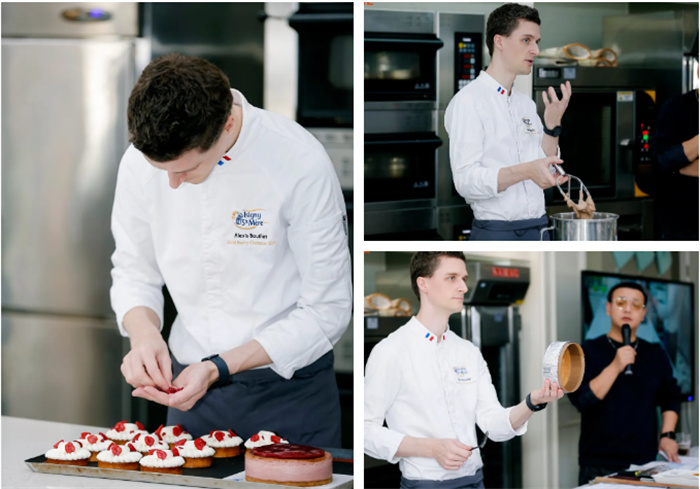 作为19岁就获得世界技能大赛冠军的Alexis,现场演绎了5款经典甜品的制作方法,并对细节精髓、制作技巧都进行了详实的介绍与操作,毫无保留地将自己的烘焙经验、技术核心分享给同学们!