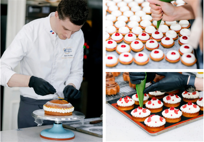 制作过程中,Alexis 手法娴熟,每个制作步骤都讲得细致入微,无论是选材、制作手法,还是甜品造型,无不体现了他对烘焙艺术的深厚造诣与追求~