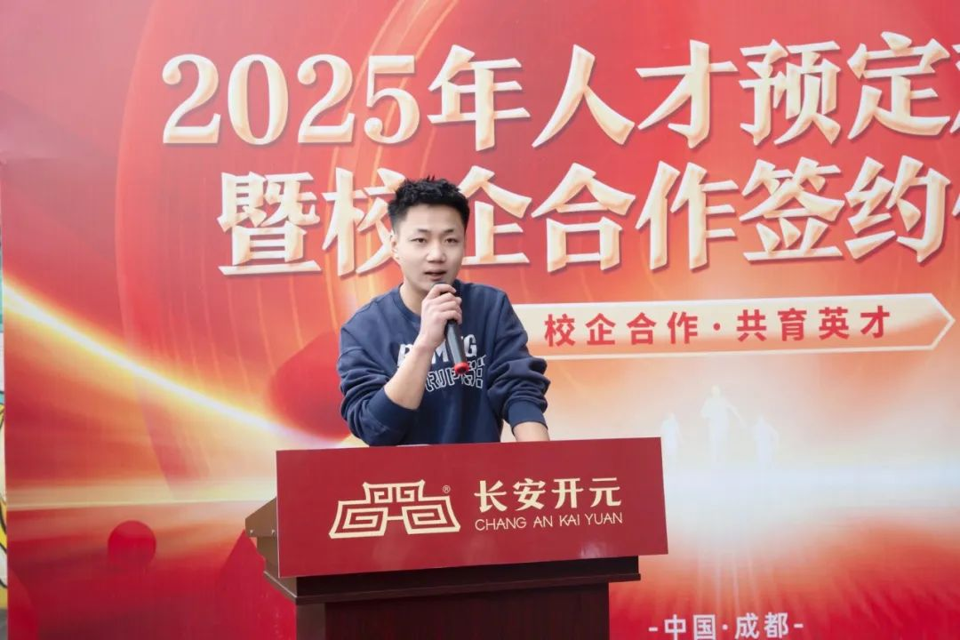 成都优美西点校区负责人曾赛平校长上台发言,表达了对此次校企合作的美好期许。