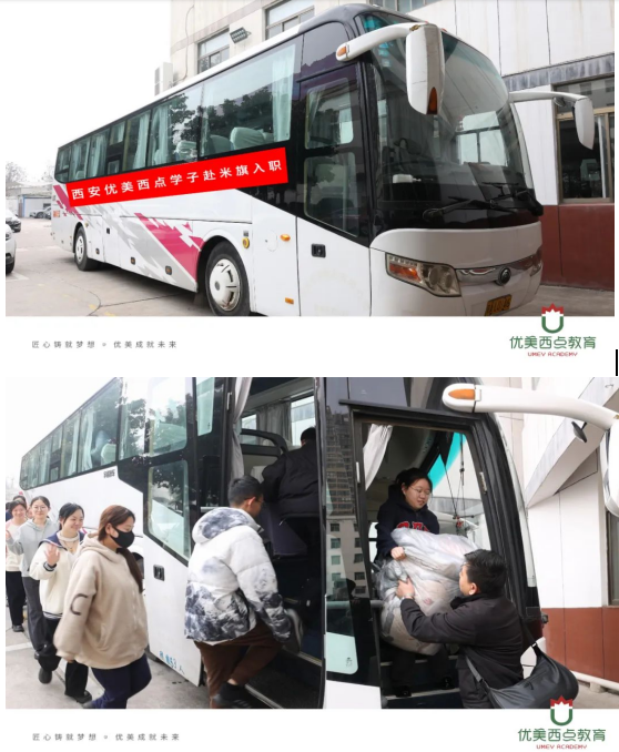 清晨,阳光洒满校园,米旗的专车早早抵达西安优美西点学校。同学们拖着行李箱,脸上满是兴奋与憧憬,在老师的组织下有序登车。窗外的景色飞速掠过,仿佛预示着他们即将开启的全新生活节奏。