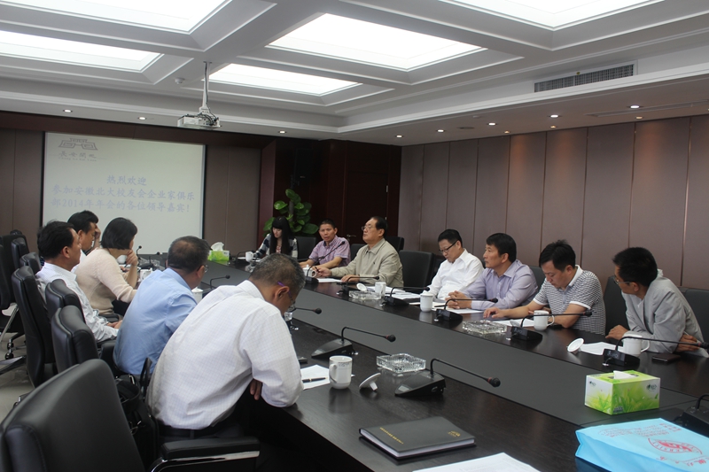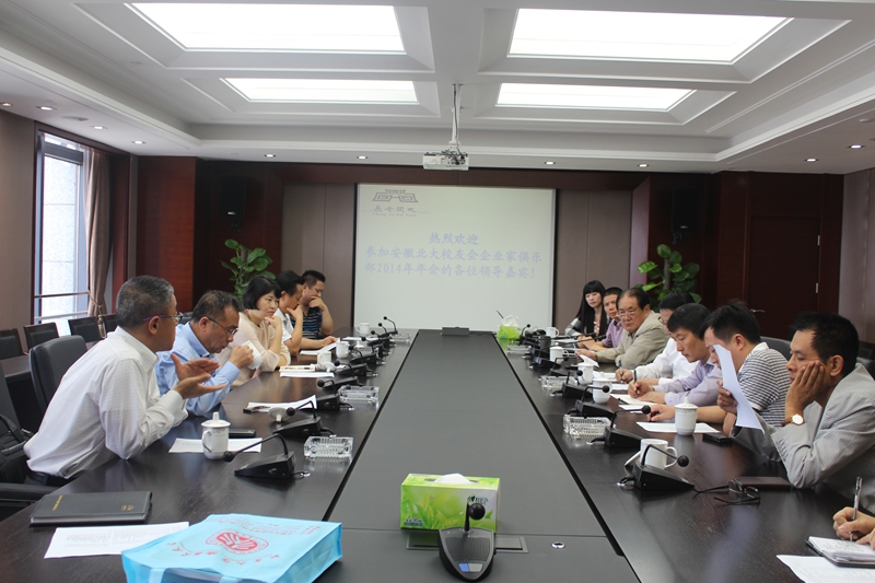 10月10日上午,安徽北大校友会企业家俱乐部2014年年会在集团公司总部召开,校友会携手安徽省投融资企业商会举行了座谈会,集团公司董事长作为安徽省投融资企业商会执行会长在会上讲话,并当选安徽北大校友会企业家俱乐部会员。