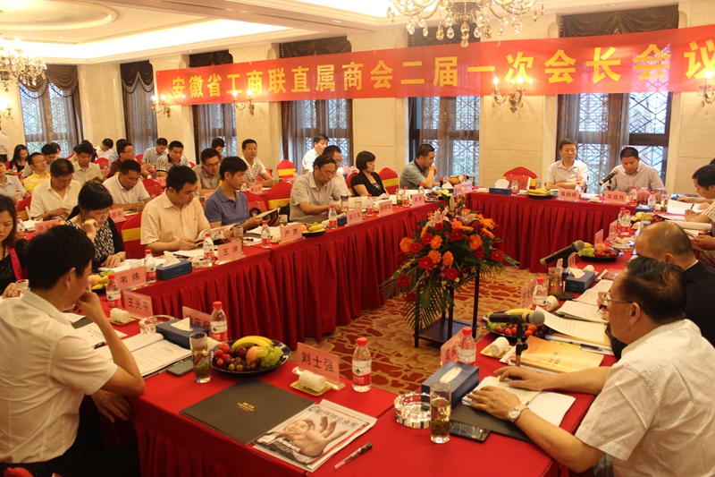 董事长发表讲话后,各参会会长分别作了自我介绍,加深彼此间的熟悉。会议对直属商会会长办公会成员作了分工,商会监事会主席吴信林向大会通报了徽商总部基地项目的进展情况,会长王文银也与会人员分享了企业治理之道。