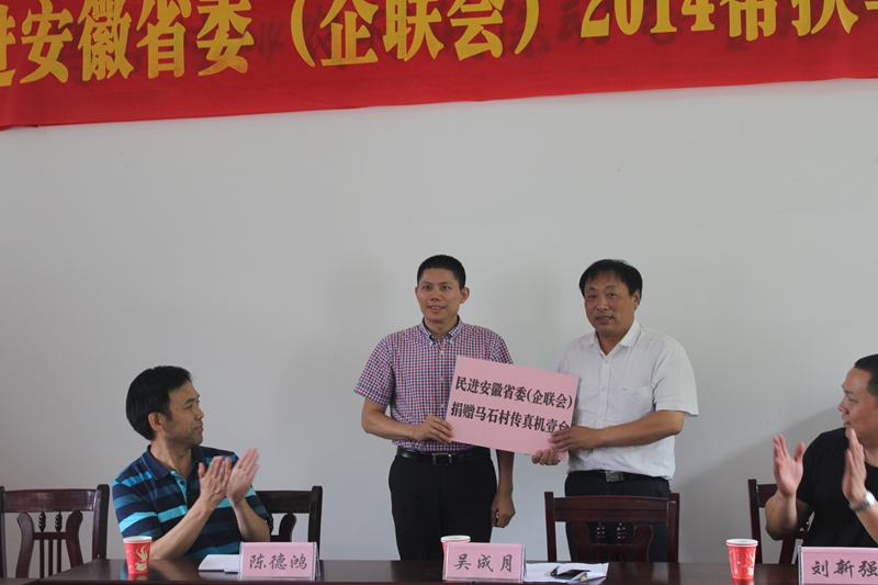 6月30日上午,由集团公司董事长担任会长的安徽省民进企业家联谊会一行来到金寨县马石村开展帮扶活动,向当地学校和村委会捐赠爱心物品。民进省委会领导及企联会会员参加活动,民进六安市领导和金寨县委统战部领导陪同。