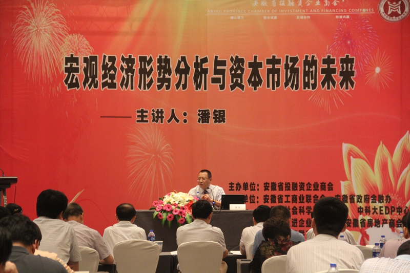6月10下午,由安徽省投融资企业商会主办的“宏观经济形势分析与资本市场的未来”大型讲座在合肥绿地福朋酒店举行。集团公司董事长作为省投融资企业商会执行会长出席讲座活动并致辞。应邀出席的有省工商联、省民政厅、省政府金融办、省担保集团、省徽商集团、省社科联、中科大EDP中心以及多家兄弟商会的领导和会员代表。