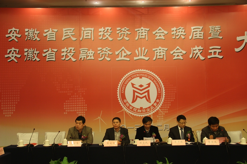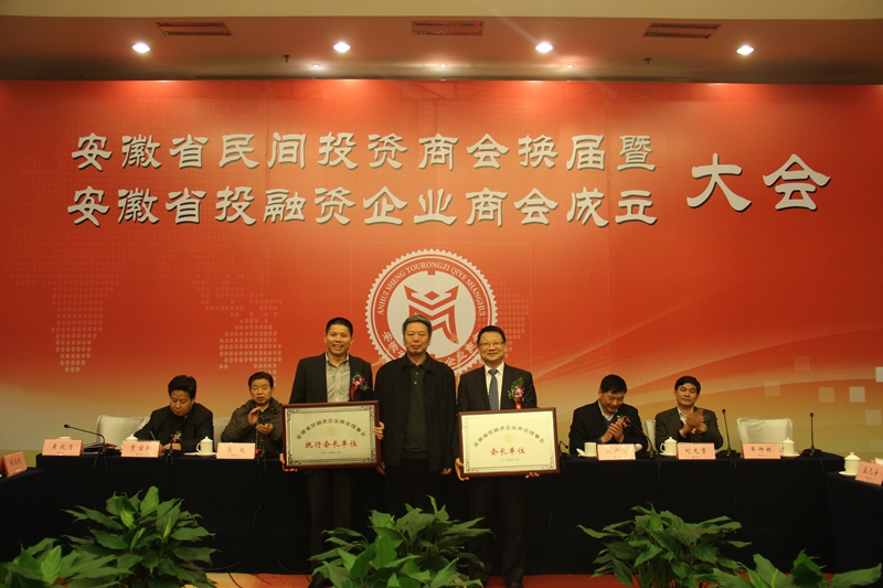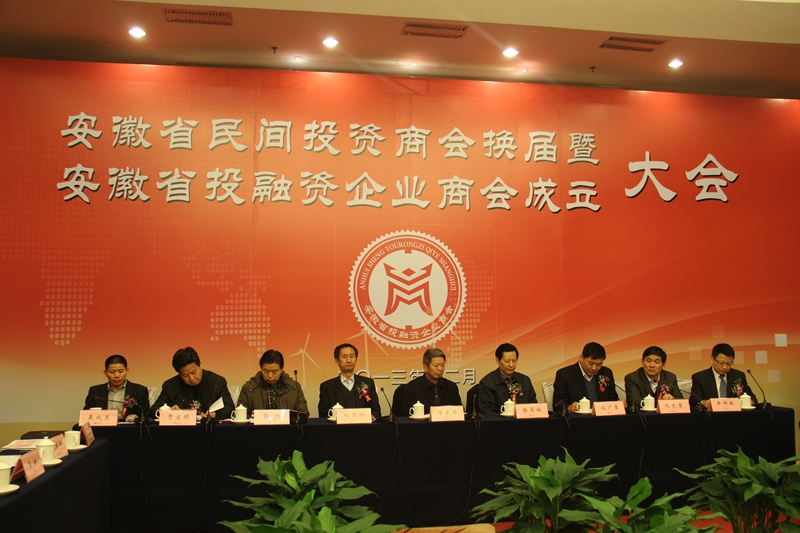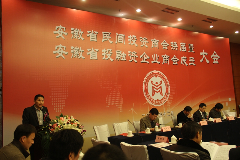 2013年12月26日下午,安徽省民间投资商会换届暨安徽省投融资企业商会成立大会在合肥滨湖新区世纪金源大饭店举行。省民管局、省工商联领导、省政府金融办,以及省内外多家金融机构、金融服务机构、投资机构、投资服务机构和各行业大中型民营企业法人、社会团体等负责人参会。集团公司董事长参加大会,当选为安徽省投融资企业商会执行会长,并代表商会作了筹备工作报告。