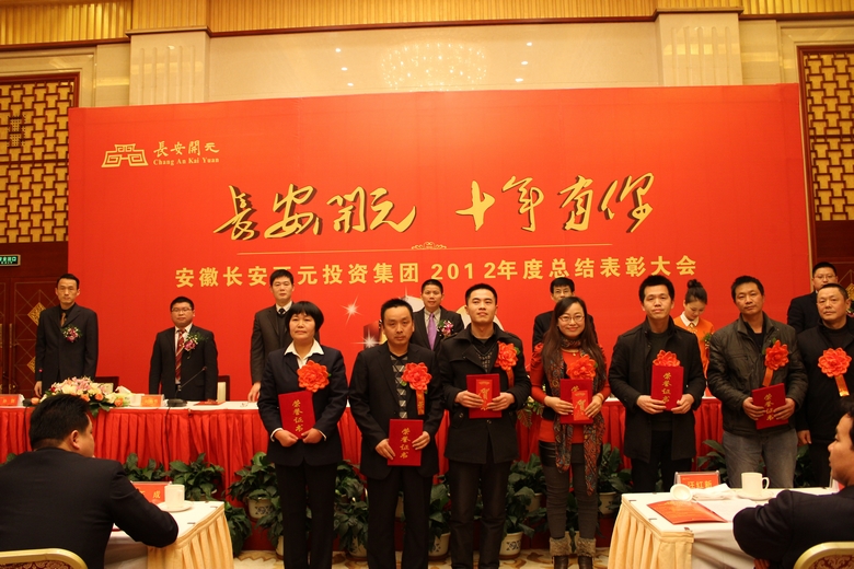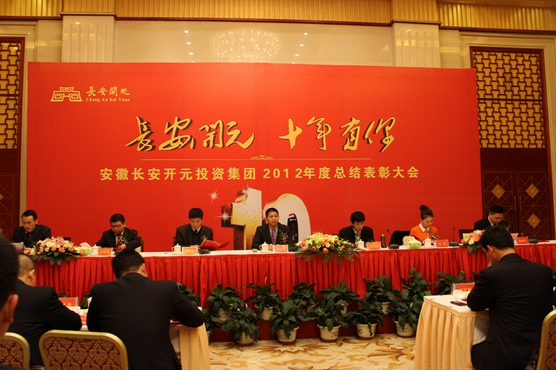 2013年2月5日,安徽长安开元投资集团2012年总结表彰大会在稻香楼隆重举行。来自集团总部和各地公司的代表出席了本次会议,聆听吴成月董事长作2012年工作总结及2013年战略规划报告。