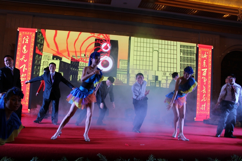 总结表彰大会结束后,精彩的新春宴会和文艺演出拉开帷幕。热力四射的开场弗朗明戈舞蹈掀起了晚会的第一个高潮;公司员工带来的歌曲尽显唱将实力;长安物业员工表演的礼仪舞蹈整齐划一,气势如虹,赢得喝彩不断;活力四射的街舞和说唱、诙谐幽默的相声、魔力四射的魔术让大家从视觉到听觉,享受全方位的震撼;由公司领导带来的《开元style》更是让现场的气氛达到了顶点。演出期间还穿插了抽奖活动,将大家情绪调到最高点,气氛十分热烈。在祝福和欢笑声中,安徽长安开元投资集团2012年总结表彰大会暨新春文艺演出圆满落幕。