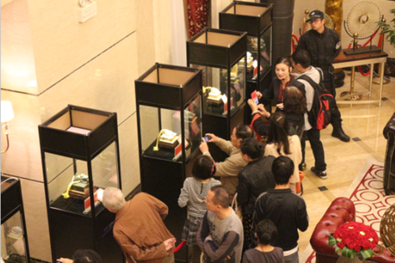 随后压轴大戏——“长安·天玺”传国玉玺展暨营销中心盛大开放仪式在全场嘉宾的“5、4、3、2、1”的倒数声和礼花彩光中耀世开启。嘉宾们进入售楼中心参观,本次玉玺展共持续一个星期,直至25日结束。