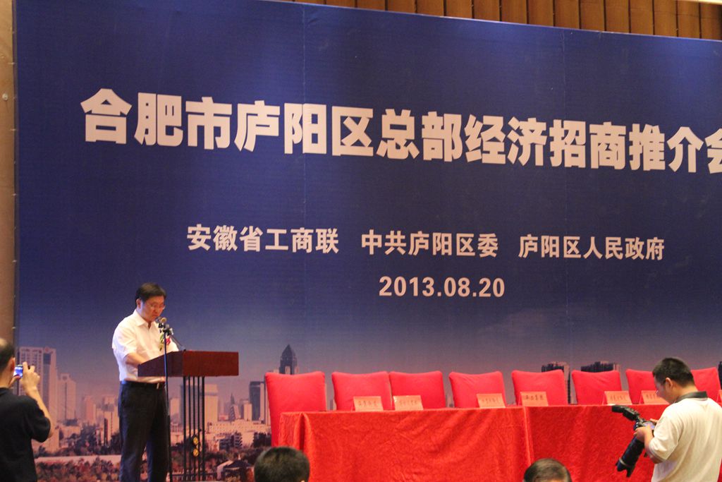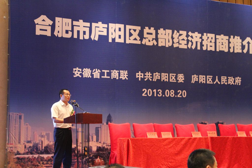8月20日下午,庐阳区总部经济招商推介会在合肥市新开元大酒店举行。省政协副主席、省工商联主席李卫华,省政协副秘书长、省工商联副主席施广勇,市政协主席董昭礼,市委常委、统战部长韦弋,庐阳区区委书记吴劲、区长邓真晓等领导出席推介会并见证签约。公司董事长吴成月作为企业代表应邀出席本次推介会,并在会上作了精彩发言。